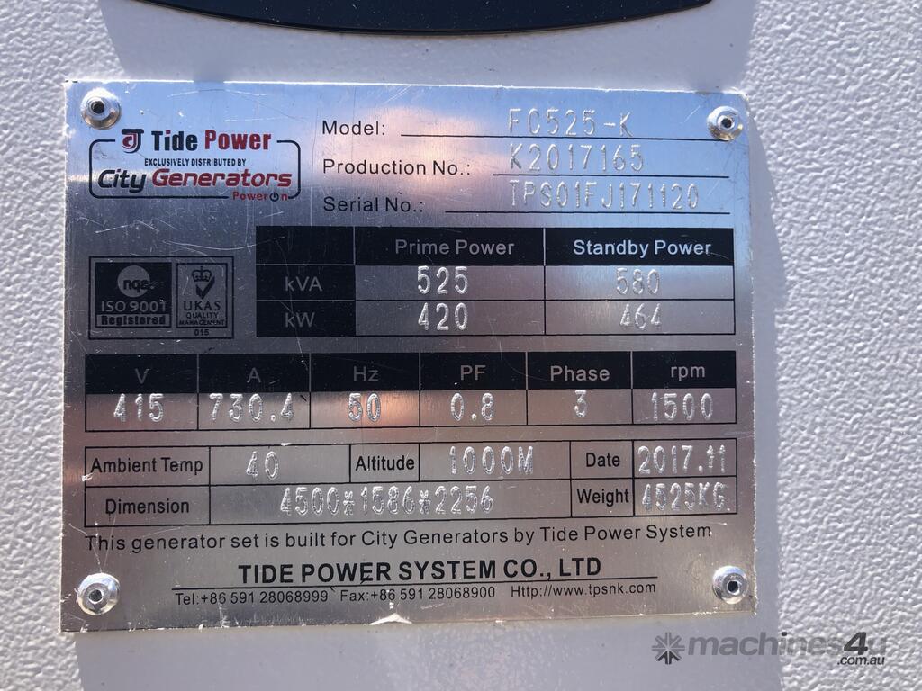 525kVA Doosan powered generator set : $82,000 AUD ($90,200 Inc. GST)