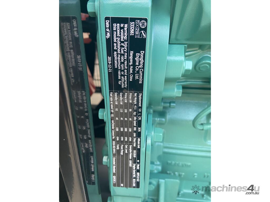 110kVA silenced generator set : $19,500 AUD ($21,450 Inc. GST)