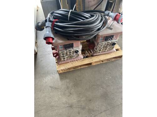 Various distribution boards with 32am and 63 amp leads. Cable covers protectors ....